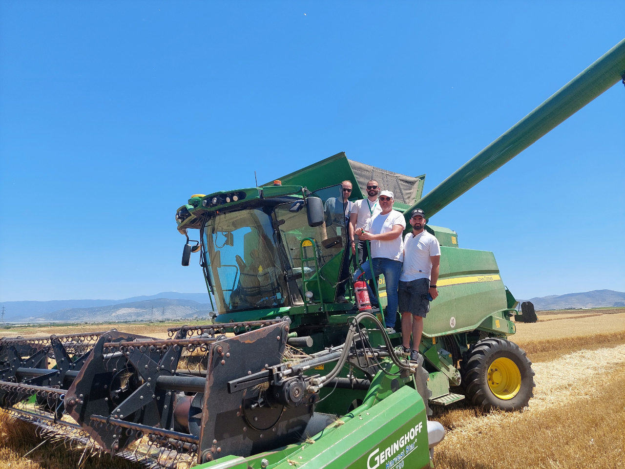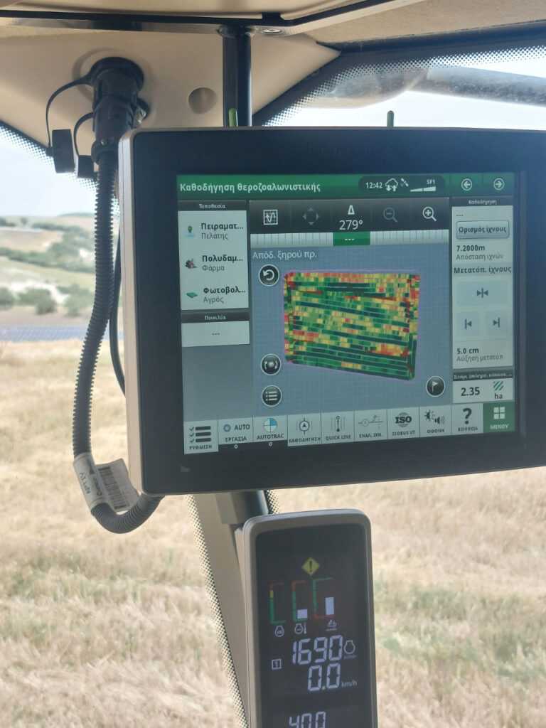 Στα πλαίσια του προγράμματος Σιτάρι Ακριβείας πριν από λίγες ημέρες πραγματοποιήθηκε ο αλωνισμός και των 4 πιλοτικών αγρών, με την πλέον σύγχρονη θεριζοαλωνιστική μηχανή JOHN DEERET660i η οποία διαθέτει πέρα των άλλων και yield monitor. Τα πρώτα αποτελέσματα ως προς την σχέση αζώτου και απόδοσης είναι εξόχως ενθαρρυντικά και μας δείχνουν ότι μπορούμε να πετύχουμε αυξημένες παραγωγές με πολύ λιγότερο άζωτο. Αναμένουμε και τα αποτελέσματα από τα ποιοτικά χαρακτηριστικά και σύντομα θα επανέλθουμε με νέα ανακοίνωση. Λιπαίνουμε με ακρίβεια θερίζουμε με ακρίβεια