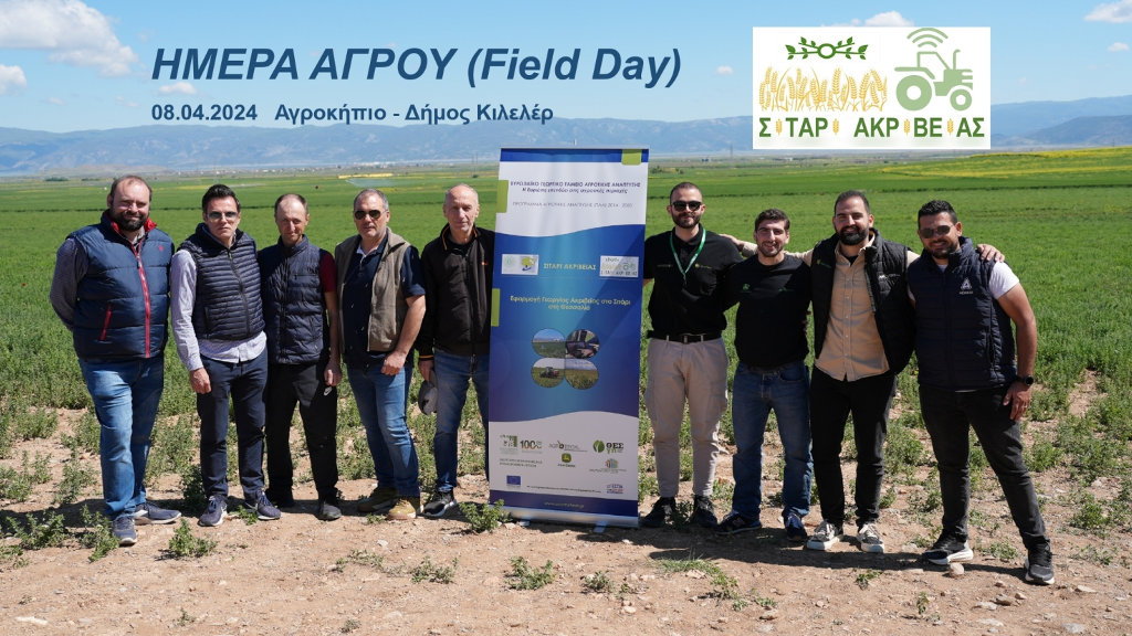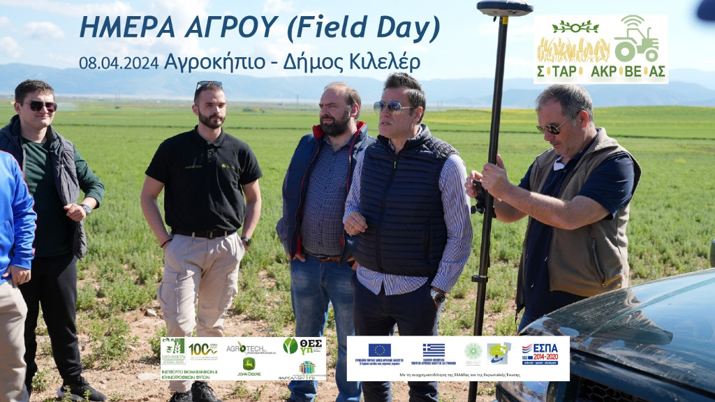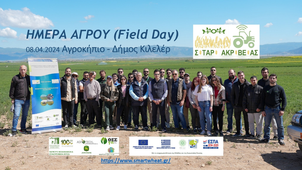 Την Δευτέρα 08.04.2024 διοργανώθηκε με μεγάλη επιτυχία στο Αγροκήπιο του Δ. Κιλελέρ ΗΜΕΡΑ ΑΓΡΟΥ (Field Day), στο πλαίσιο του έργου «Εφαρμογή γεωργίας ακριβείας στο σιτάρι στη Θεσσαλία» (Ακρ: Σιτάρι Ακριβείας https://www.smartwheat.gr/) (ΠΑΑ 2014–2020). Η ερευνητική ομάδα του έργου μετέφερε την τεχνογνωσία της διαφοροποιημένης λίπανσης σε παραγωγούς της περιοχής καθώς και σε φοιτητές του Τμήματος Γεωπονίας – Αγροτεχνολογίας του Πανεπιστήμιου Πανεπιστημίου Θεσσαλίας. Στο έργο συμμετέχουν ο ΕΛΓΟ «ΔΗΜΗΤΡΑ», Ινστιτούτο Βιομηχανικών και Κτηνοτροφικών Φυτών (ΙΒΚΦ https://www.facebook.com/ipsw.larisa ) (ως συντονιστής Φορέας), ο Συνεταιρισμός Αγροτών Θεσσαλίας ΘΕΣγη (ΘΕΣγη), ο Αγροτικός Συνεταιρισμός Δημητριακών Φαρσάλων (Farsalongi), και η εταιρεία ΜΠΟΖΑΤΖΙΔΗΣ – ΜΗΤΣΙΟΛΙΔΗΣ Α.Ε. -«AGROTECH S.A. (https://www.facebook.com/JohnDeereGreece) Με τη συγχρηματοδότηση της Ελλάδας και της Ευρωπαϊκής Ένωσης.